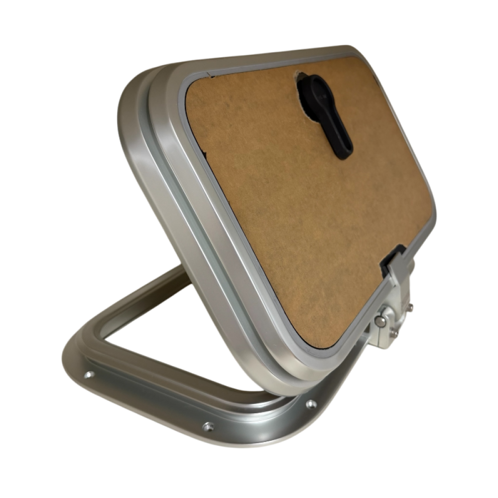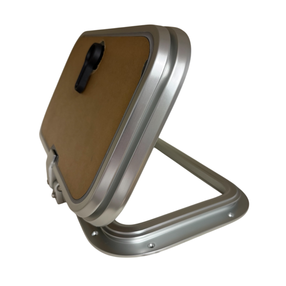Deze luiken hebben een hand gepolijst en geanodiseerd aluminium raamwerk met een hoek radius van 32 mm en een 10 mm dik 'dark smoke' acrylaat paneel.